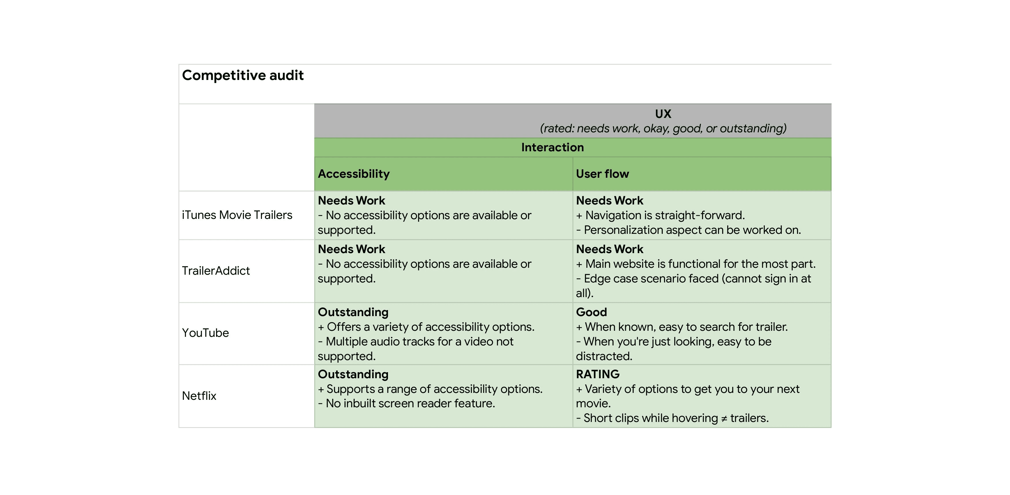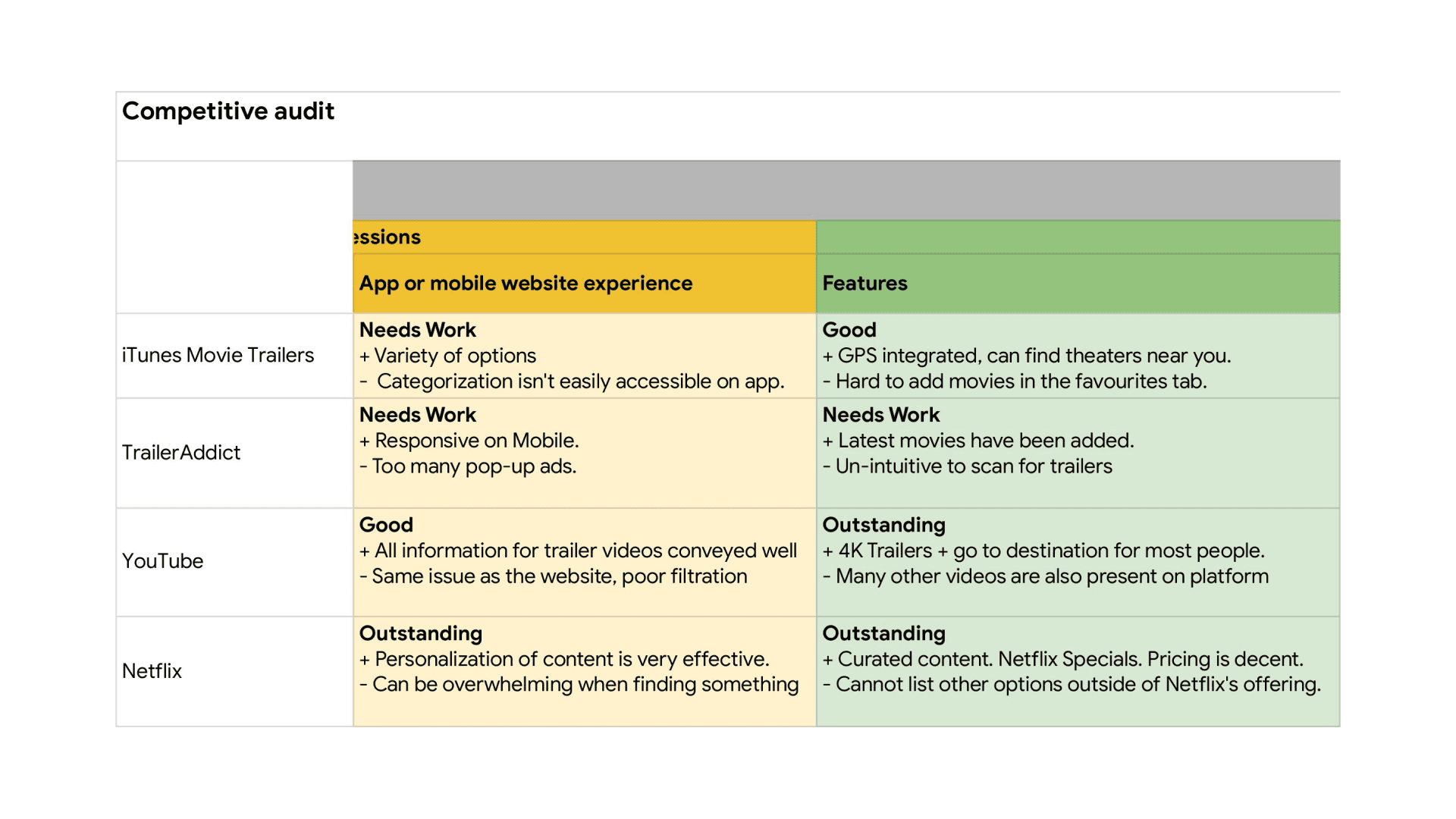 After completing the user research phase, I worked on the competitive audit, a SWOT analysis and identified gaps and opportunities.