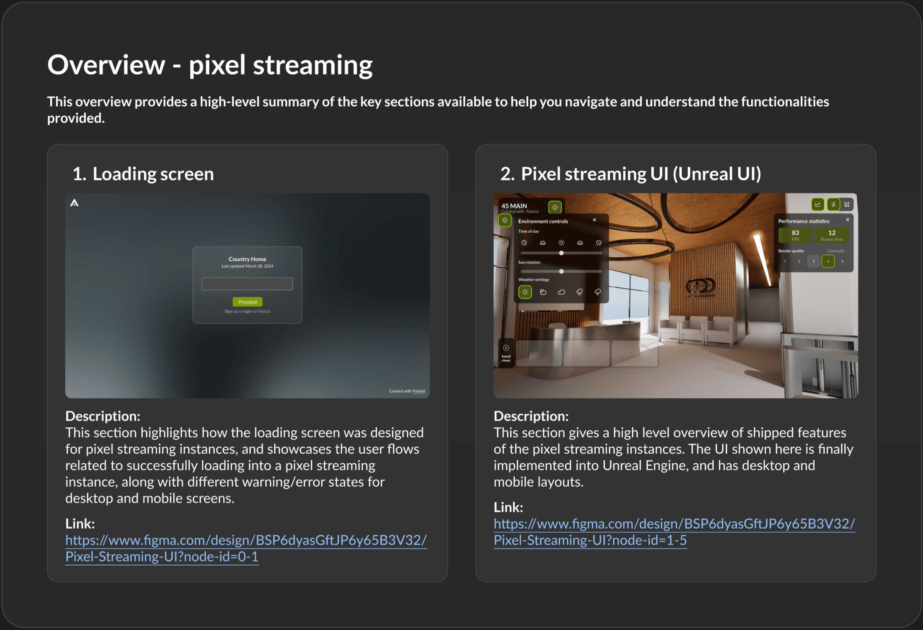 In this project, I developed a new UI for pixel streaming, simplifying it to essential features that enable users to interact with their exported scenes and evaluate performance effectively, making it easier to share these experiences with clients and stakeholders.