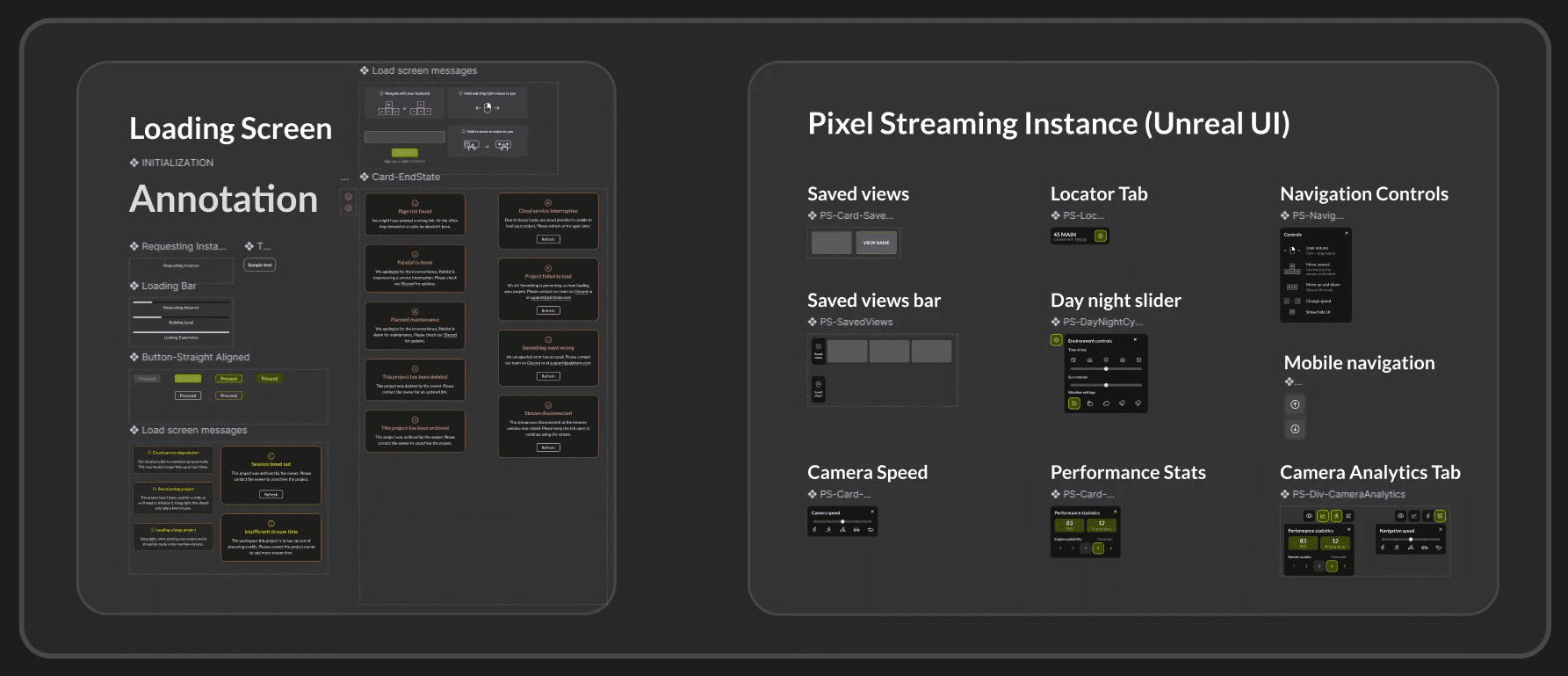 For this project, I built the design language on top of Palatial's existing design system, which I had initially developed from scratch and maintained across various other projects. This foundation allowed me to ensure consistency and scalability while adapting the design to fit the specific needs of pixel streaming UI.