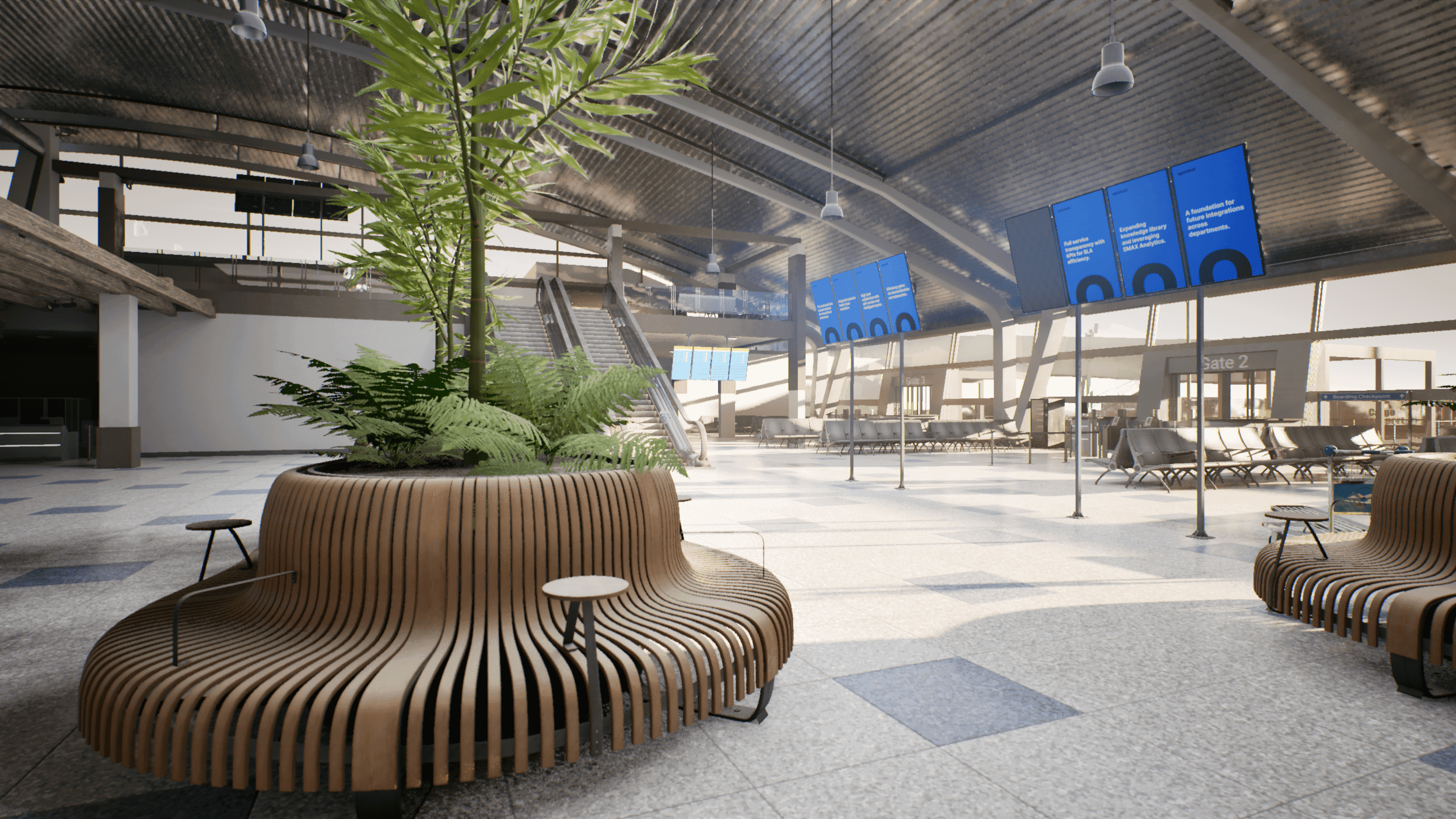 The OpenText Metaverse Experience is crafted within Unreal Engine, transporting users into three meticulously designed virtual environments: an art gallery, a data center, and Zurich Airport.